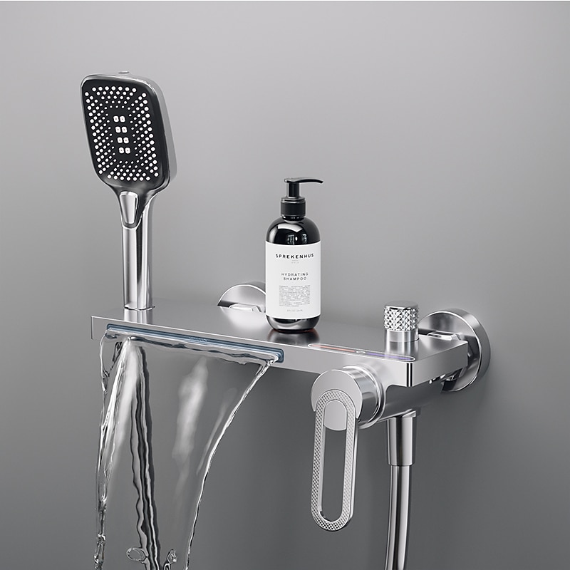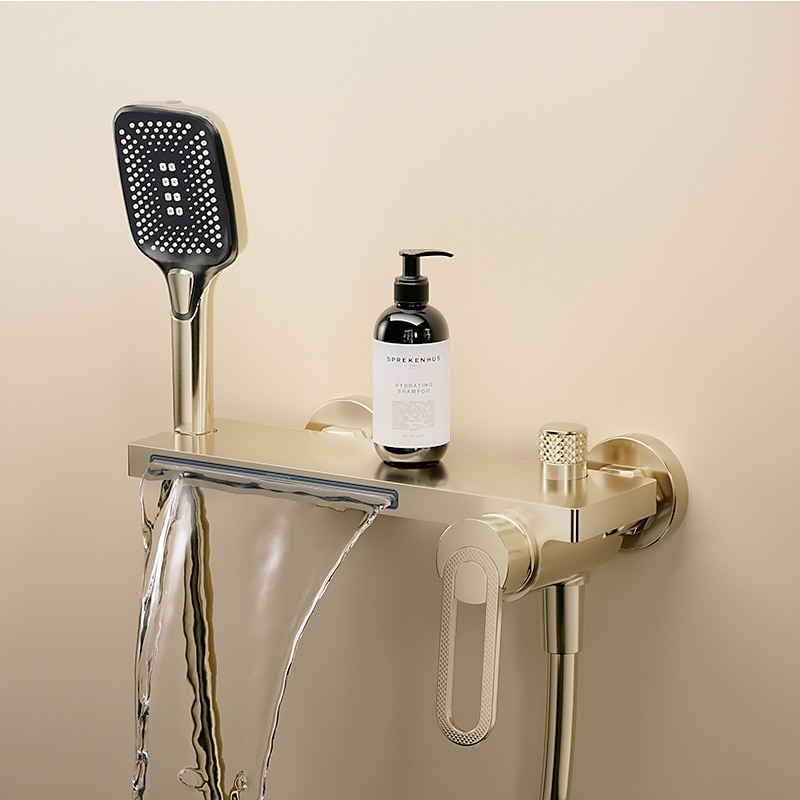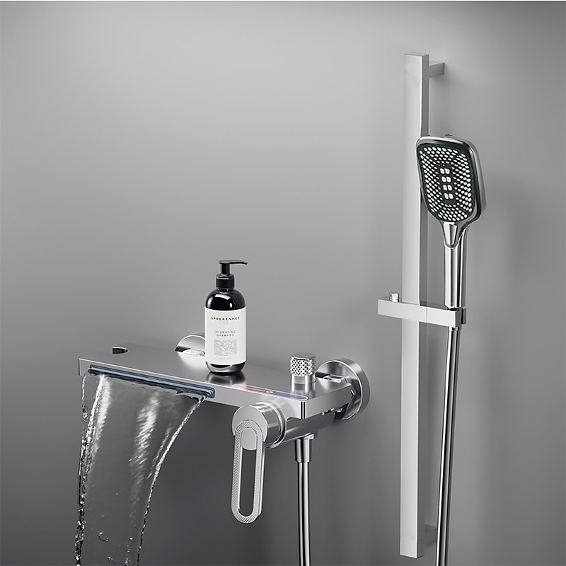 Highlights Contemporary modern appearance to fit any Décor Brass body with outstanding corrosion-resistant performance Height Adjustment Bar for Handheld Shower Faucet Included Ceramic valve to protect you against scalding or cold water shock Waterfall spout to give big flow water and fill tub quickly Simple and clear instructions for your easy installation
