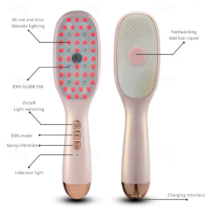 New EMS Electric Massage Comb Spray Comb Head Acupoint Medicine Comb Red Blue Light Therapy Device Anti-Hair Loss Brush 1
