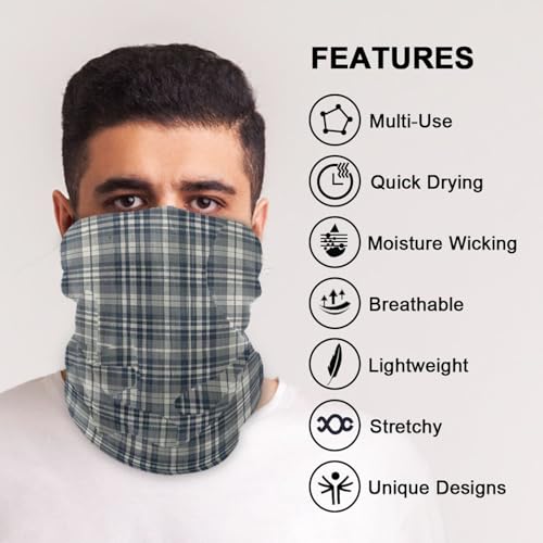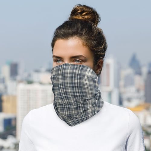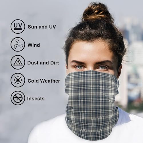 HOT ! Vintage Buffalo Plaid Checked Grey Four season Wind proof hood womens neck gaiter Lightweight Masks for face for Skiing Hunting halloween costumes mascara para el sol
