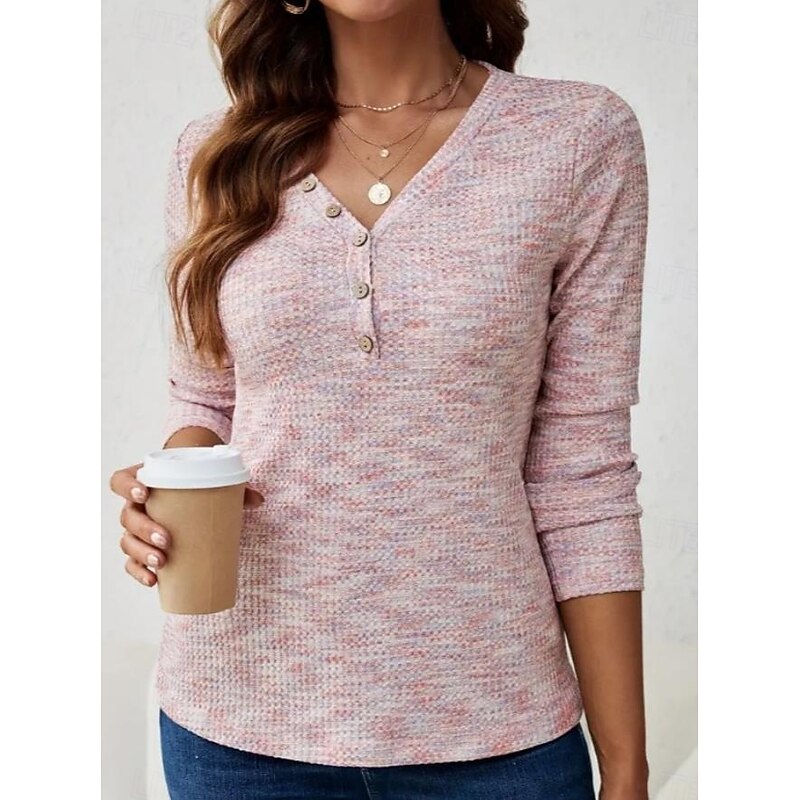 Highlights [Fabric] This elegant women’s tunic is crafted from a blend of cotton and polyester, providing a soft, breathable fabric with a micro-elastic quality for added comfort. [Silhouette] Designed with a regular fit, it features a casual and relaxed style that complements a variety of body types. The long sleeves make it perfect for layering during the transitional seasons of spring and fall. [Design Highlights] This tunic showcases a chic V-neckline enhanced by stylish button detailing, adding a touch of sophistication to its minimalist design. The solid color pattern ensures versatility, making it a timeless piece. [Occasions] Ideal for daily wear, this tunic effortlessly pairs with jeans or casual pants, making it suitable for a wide range of casual outings, from weekday errands to weekend gatherings. [Size Range] Available in sizes S, M, L, XL, and 2XL, this tunic offers a comfortable fit for diverse body shapes, ensuring every wearer can enjoy its stylish charm.