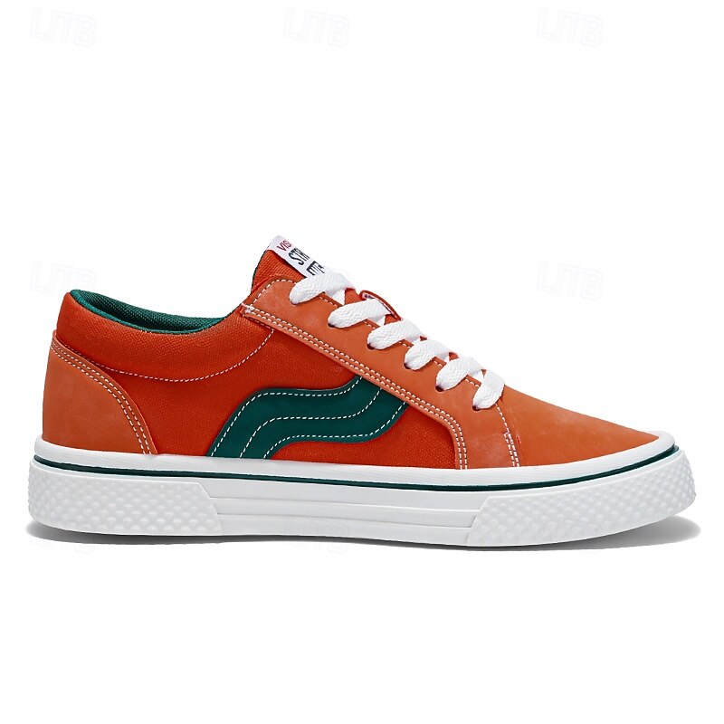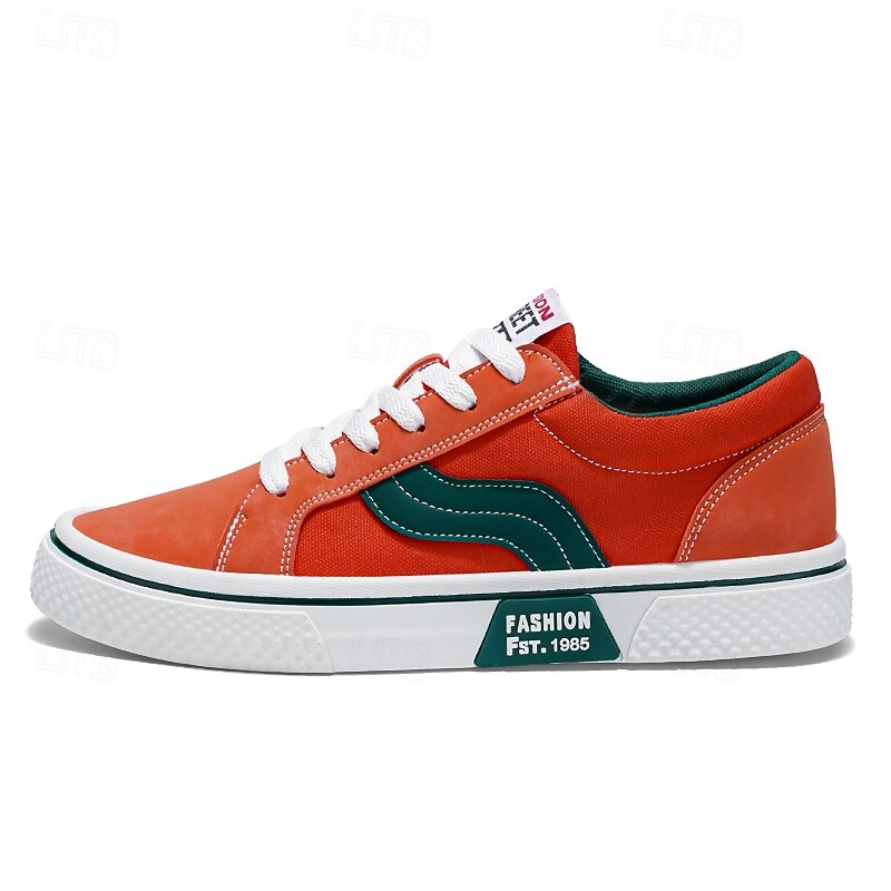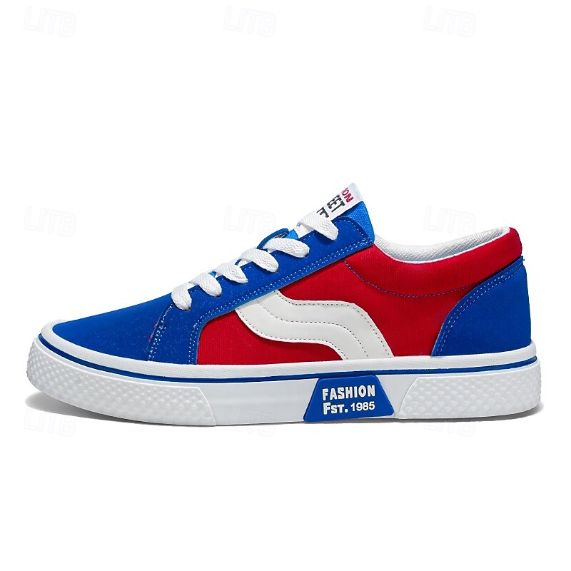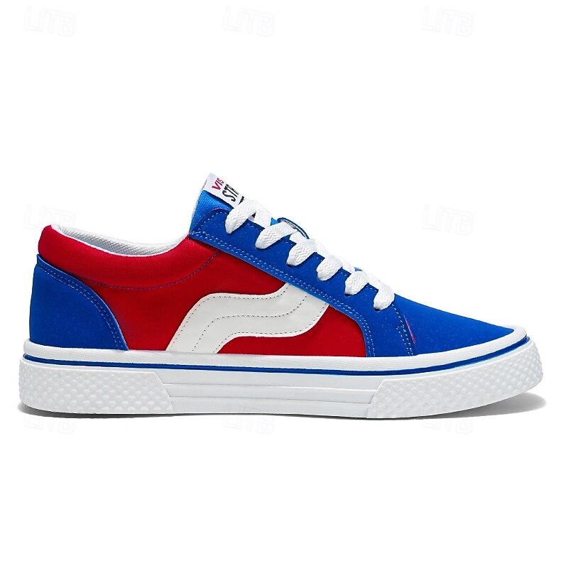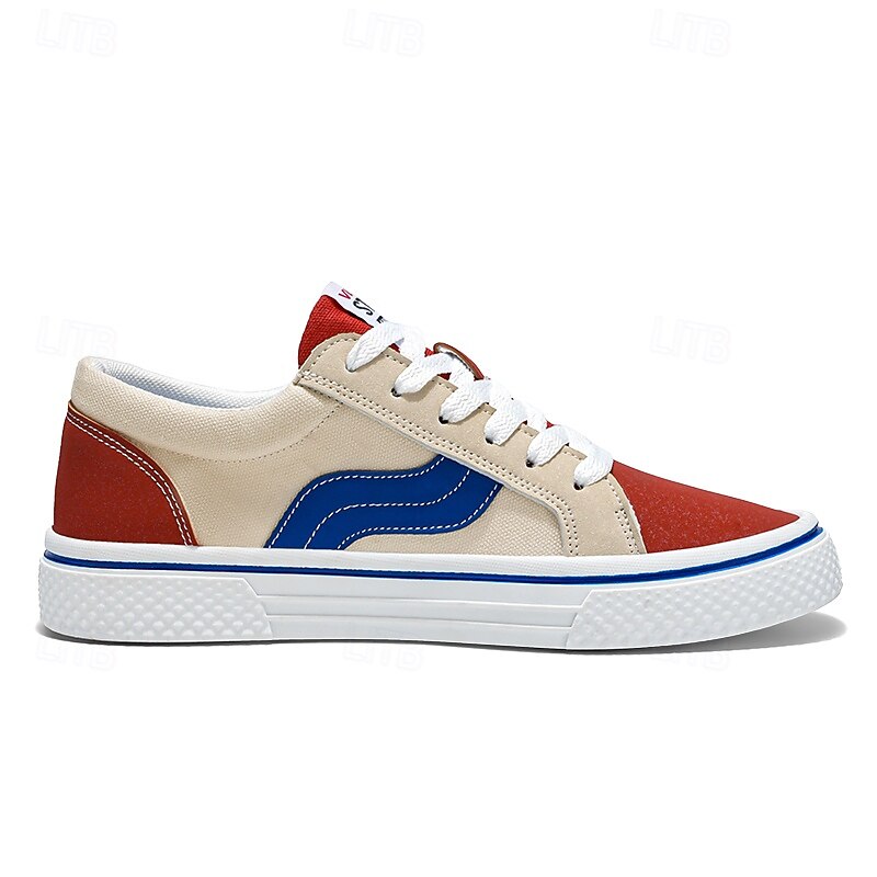 Men's Red and Beige Lace-Up Sneakers – Retro Low Top Casual Sport Shoes with Blue Stripe Design for Youth Fashion, Campus, Travel and Outdoor Activities 36