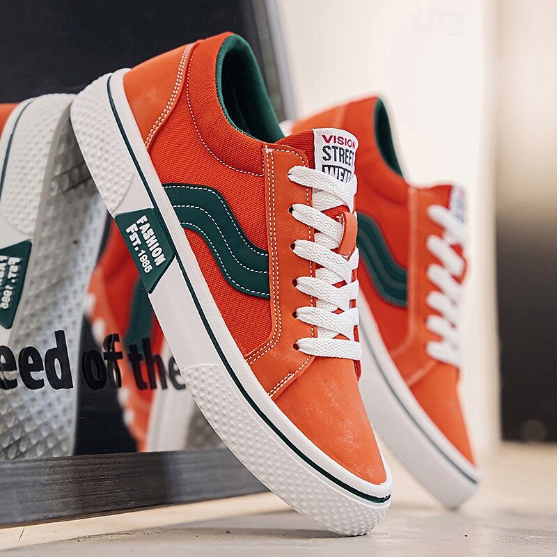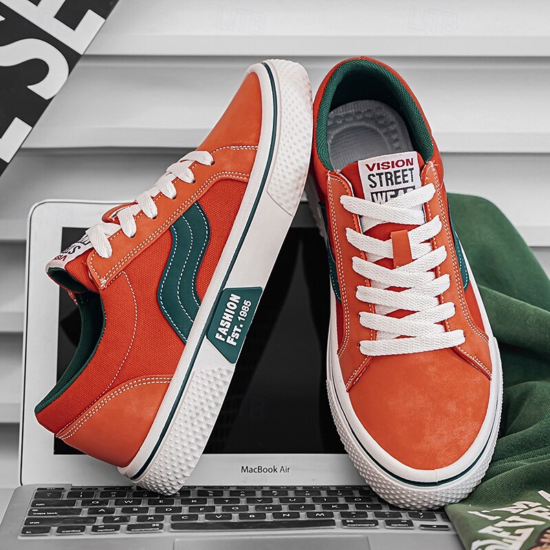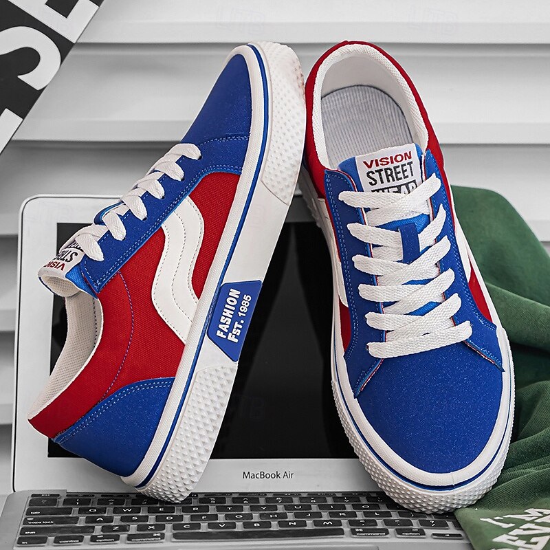 More information about Men's Red and Beige Lace-Up Sneakers – Retro Low Top Casual Sport Shoes with Blue Stripe Design for Youth Fashion, Campus, Travel and Outdoor Activities