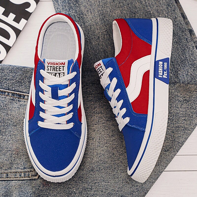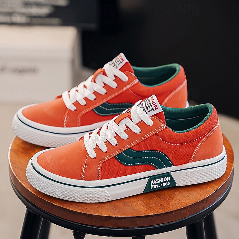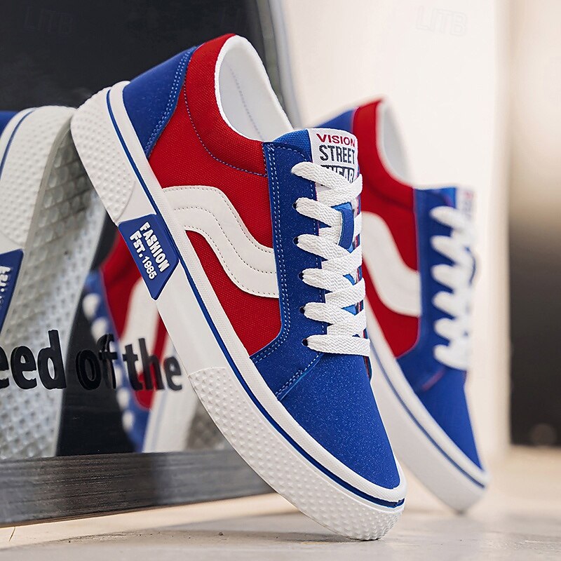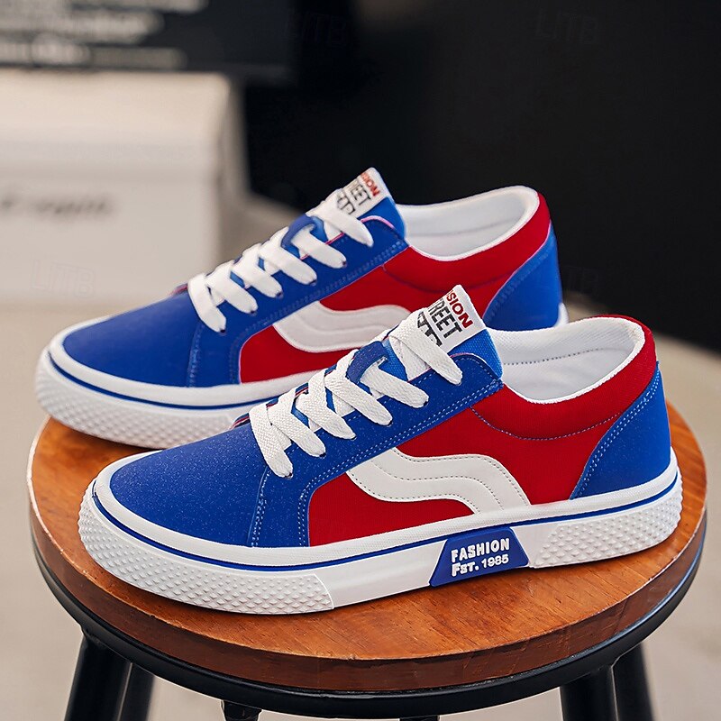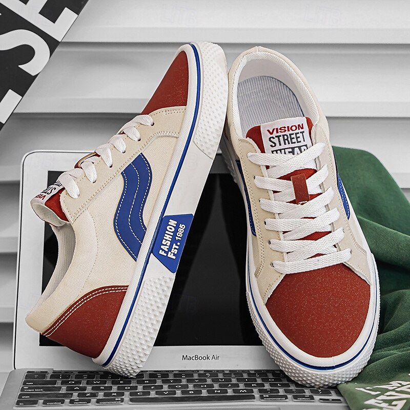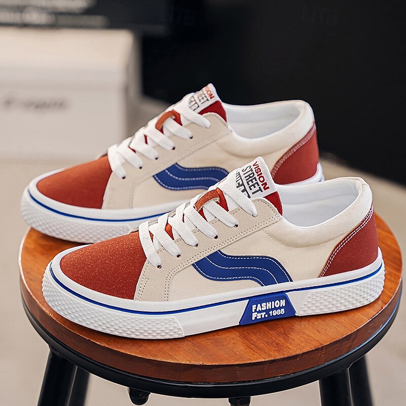 Men's Red and Beige Lace-Up Sneakers – Retro Low Top Casual Sport Shoes with Blue Stripe Design for Youth Fashion, Campus, Travel and Outdoor Activities 35
