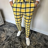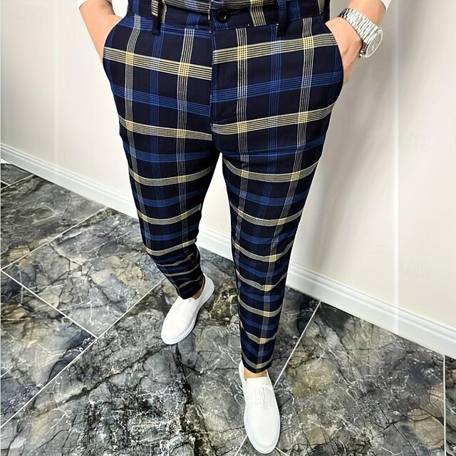 More information about Men's Geometric Grid / Plaid Dress Pants Trousers Suit Pants Mid Waist Business Casual Formal Dailywear Slim Fit Pants with Pockets Spring Fall 3D Print Yellow Blue Dark Blue