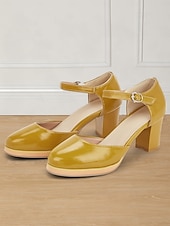 More information about Women's Yellow Mary Jane Block Heel Pumps with Round Toe and Adjustable Strap for Retro Style, Office Wear and Formal Events