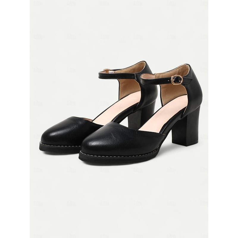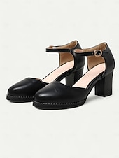 Highlights - Made of high-quality PU material - Features a stylish buckle embellishment - Comfortable synthetic leather lining - Chunky heel for added stability - Rounded toe shape for a classic look - Durable rubber outsole - Perfect for daily wear