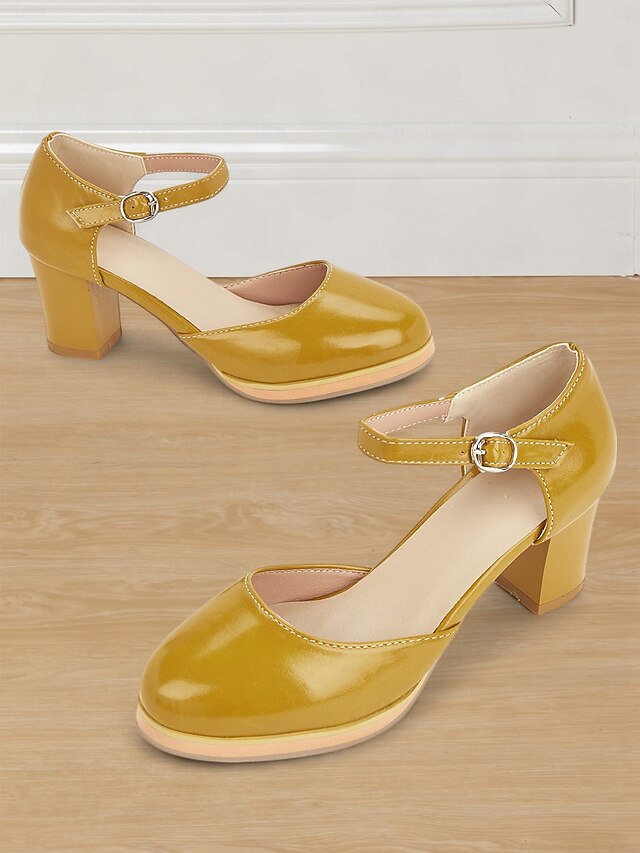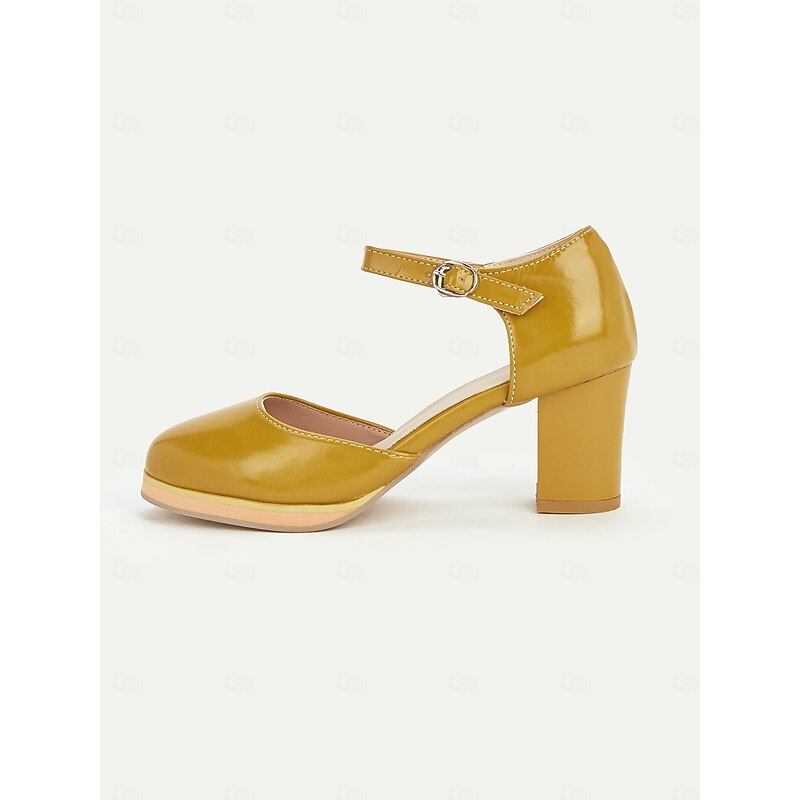 Women's Yellow Mary Jane Block Heel Pumps with Round Toe and Adjustable Strap for Retro Style, Office Wear and Formal Events 1