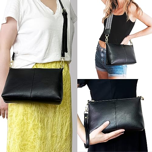 Small Crossbody Clutch Purses Bags for Women Wristlet Wallet Vegan Shoulder Handbags Guitar Strap + Leather Strap 3