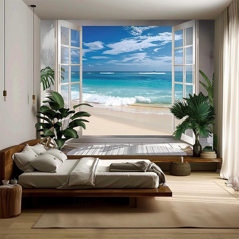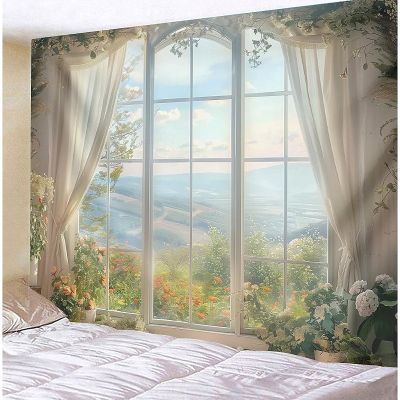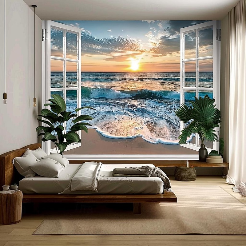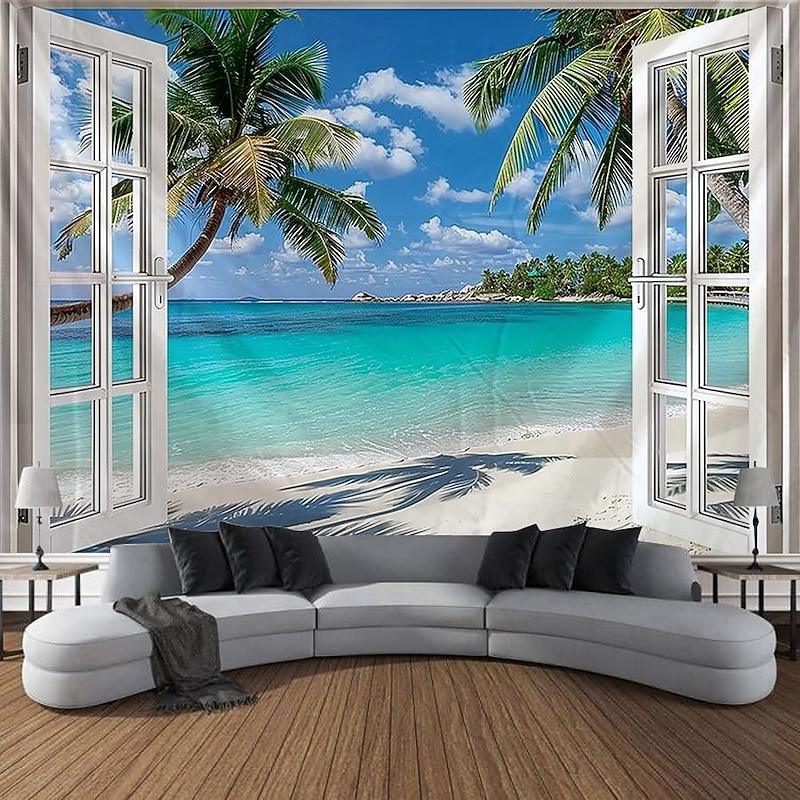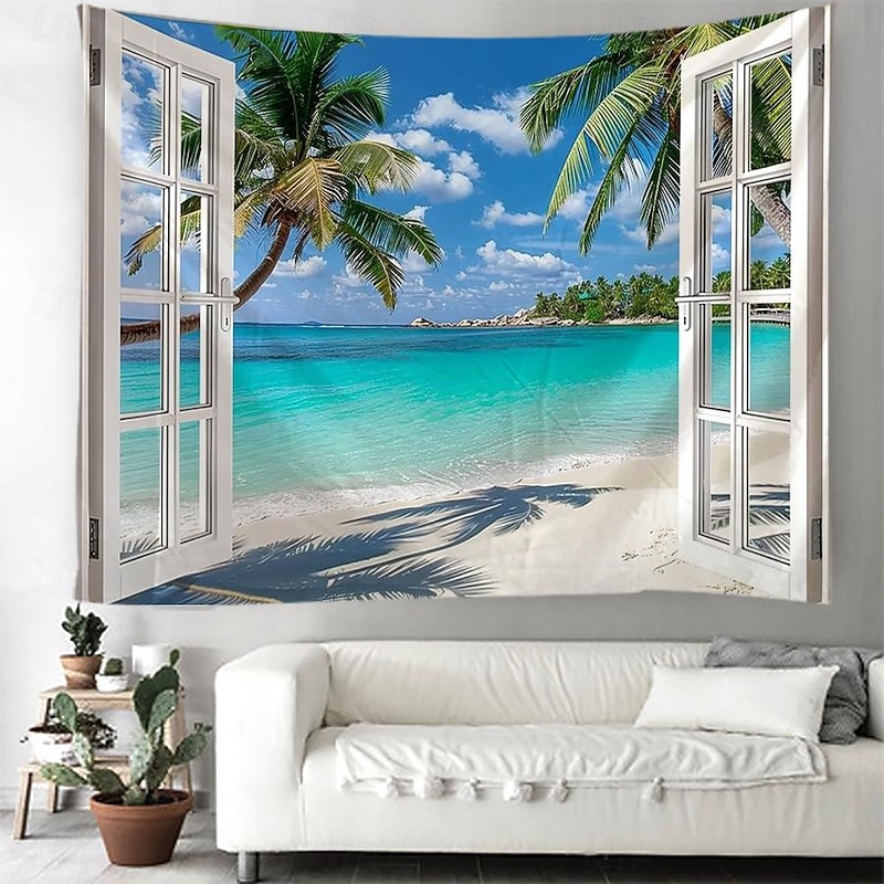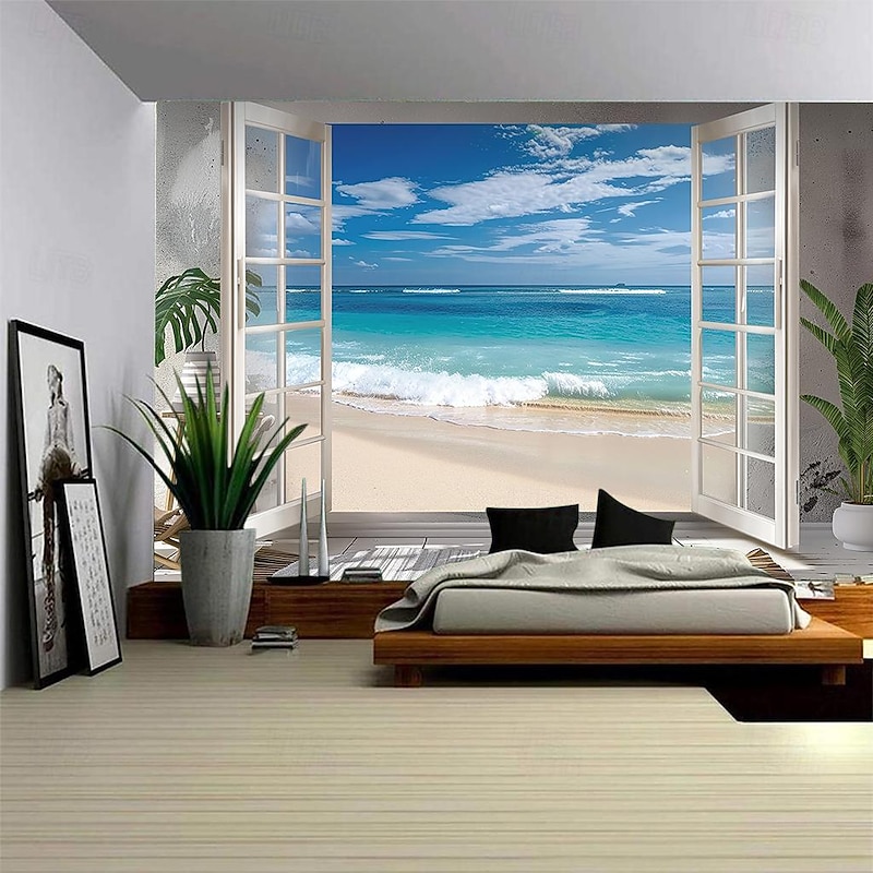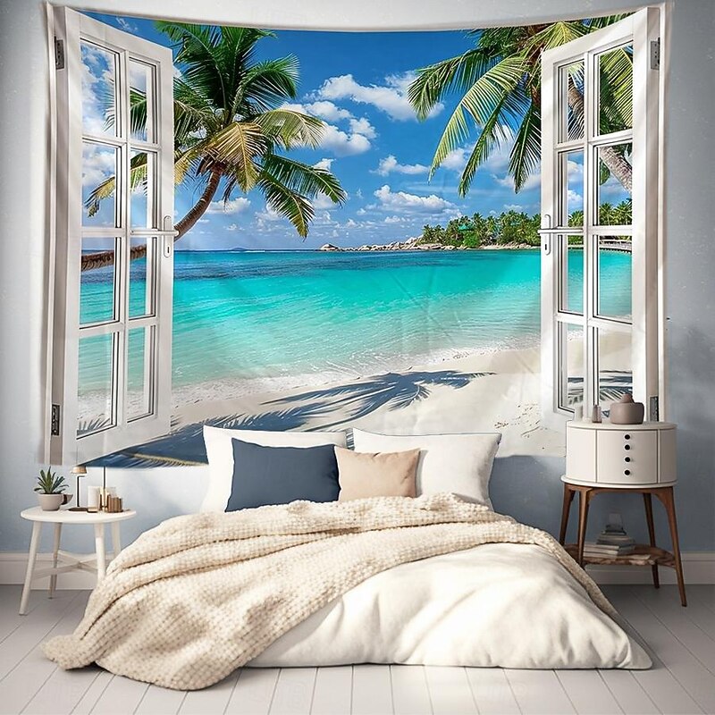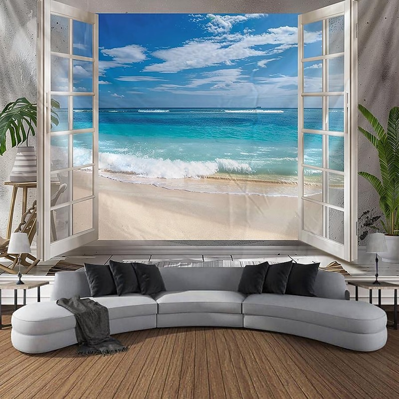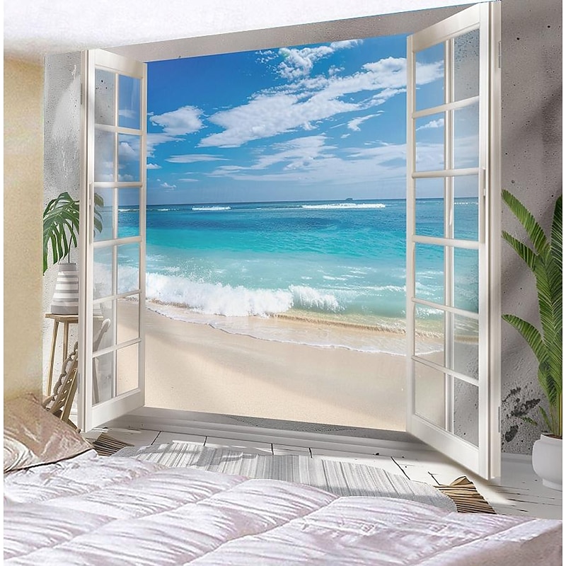 HOT ! Window Ocean Boat Hanging Tapestry Wall Art Large Tapestry Mural Decor Photograph Backdrop Blanket Curtain Home Bedroom Living Room Decoration
