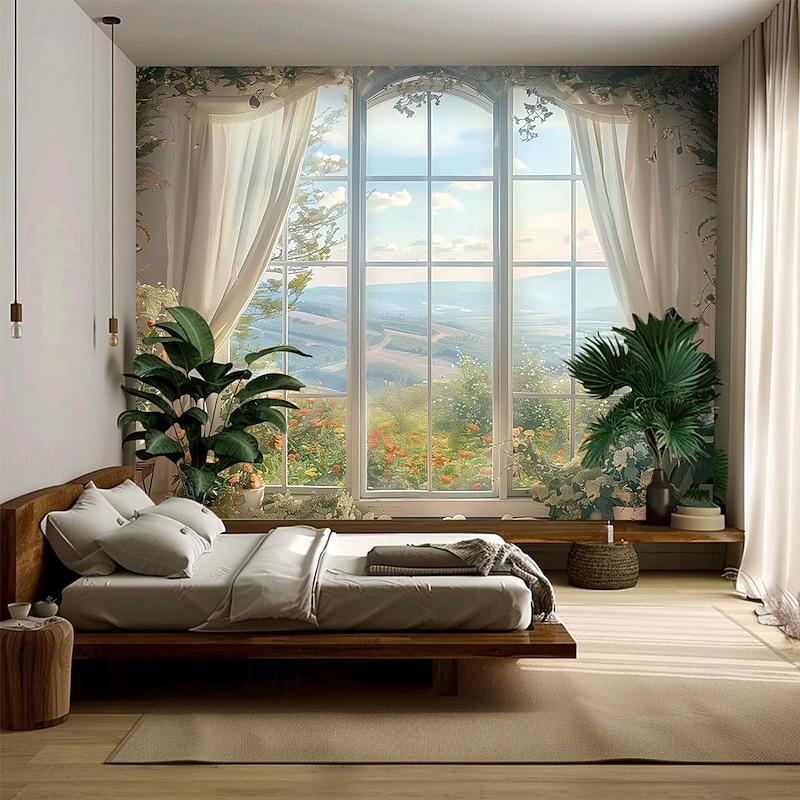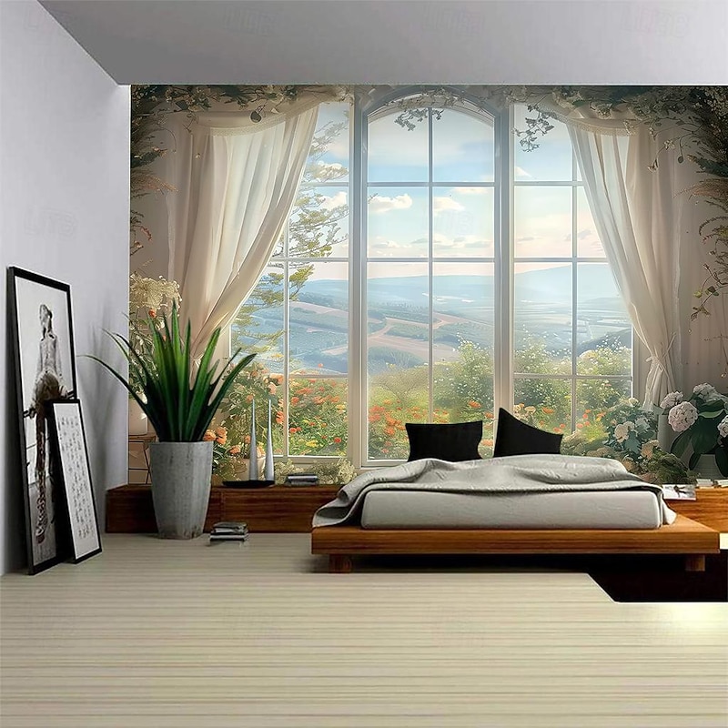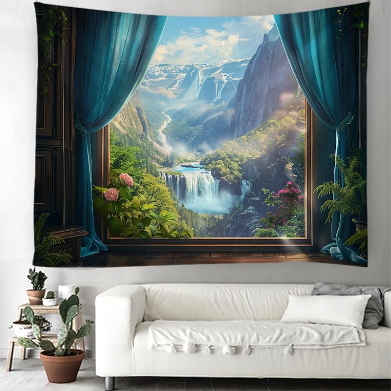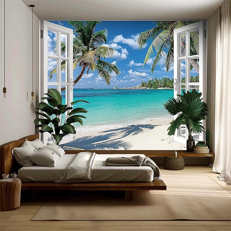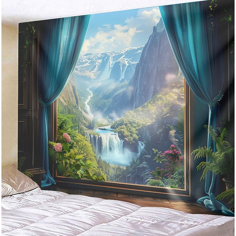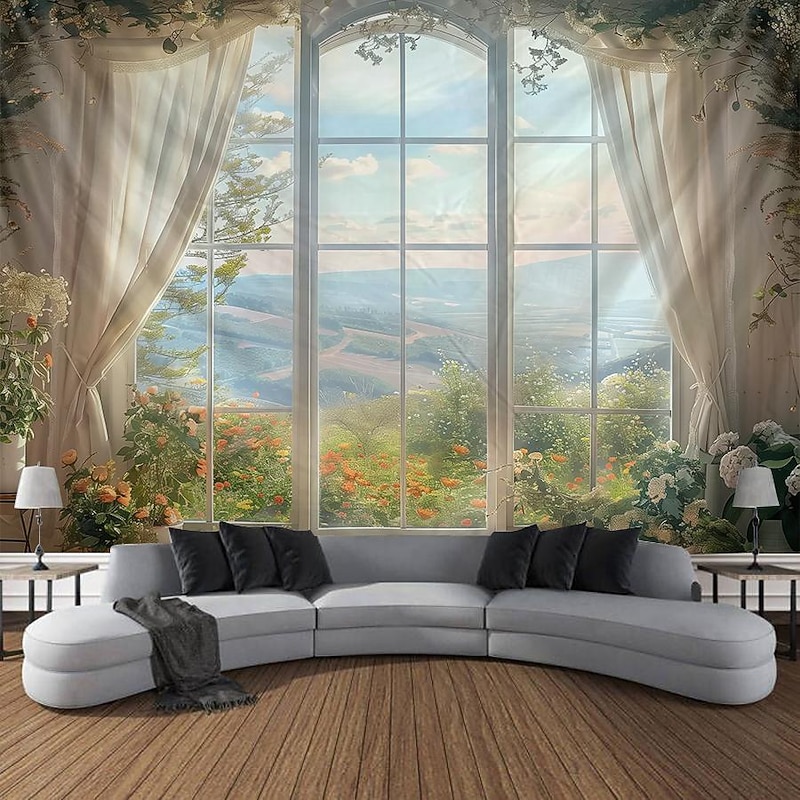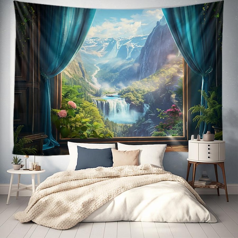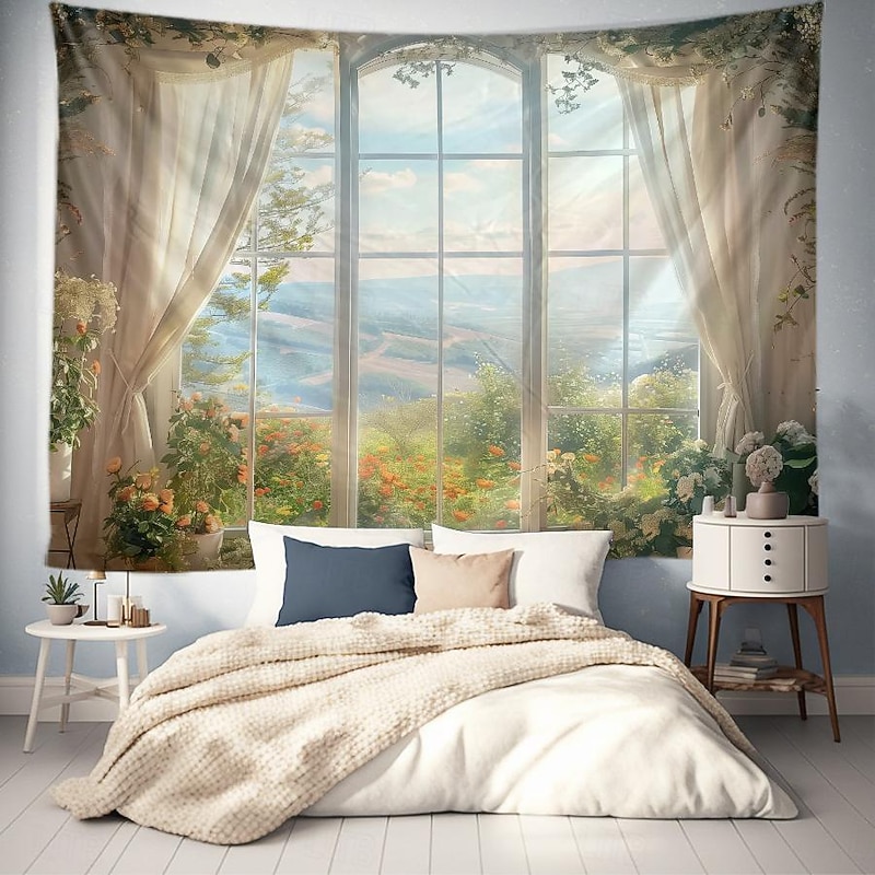 HOT ! Window Ocean Boat Hanging Tapestry Wall Art Large Tapestry Mural Decor Photograph Backdrop Blanket Curtain Home Bedroom Living Room Decoration