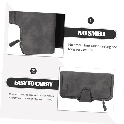 VANZACK Minimalist Women's Buckle Wallet Long Snap Closure Wallet Pockets Zipped Purse for Daily Use Grey 2