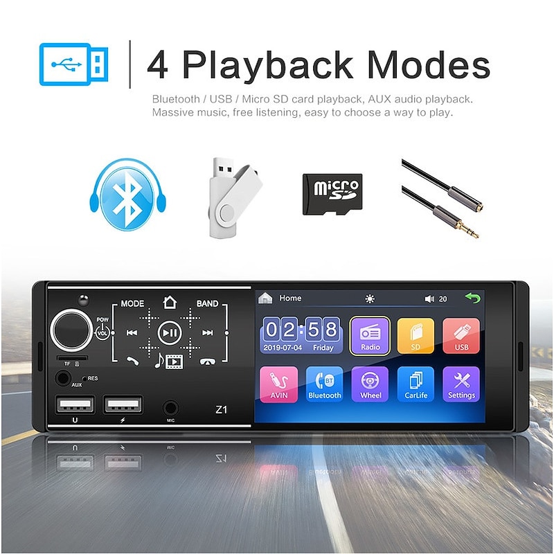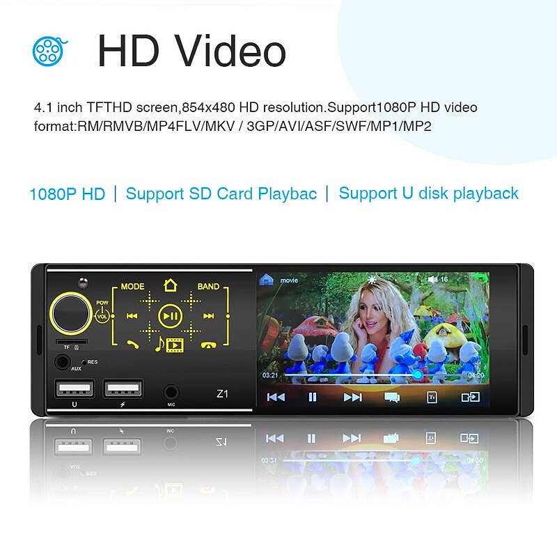 More information about 4.1''Inch Car MP5 Player 1din HD Capacitive Touch Screen Car Stereo Audioradio Support Wireless SWC Remote /Phone Charging Port/Hands Free Calling/Mirror Link/USB/TF Card/Aux-in/FM Radio Receiver