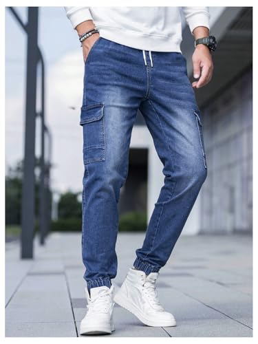 More information about OYOANGLE Men's Flap Pocket Jogger Cargo Jeans Drawstring Waist Skinny Denim Pants Trousers