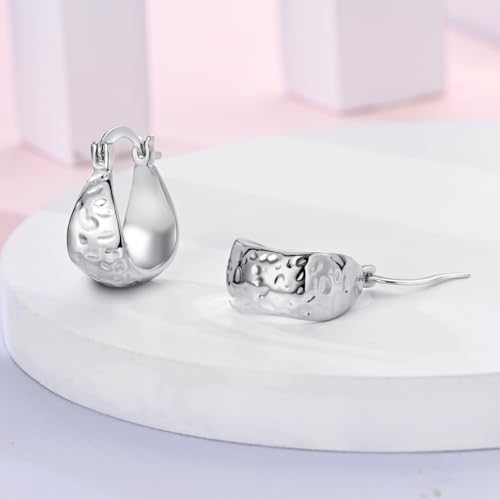 Hapour Sterling Silver Chunky Hoop Earrings for Women Hypoallergenic Thick Lightweight Huggie Earring Everyday Hoop Earrings 7
