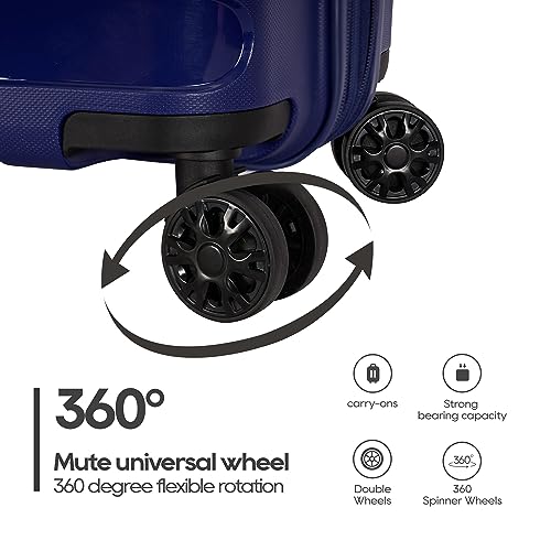 • 【Silent double row aviation big wheel】Silent & Smooth Multi-directional Spinner Wheels: Wheel and handle testing ensures luggage can withstand 50lbs of force from being dropped, roll for 20 Mile with 50lbs of pressure, can withstand temperatures as low as 5 degrees F.