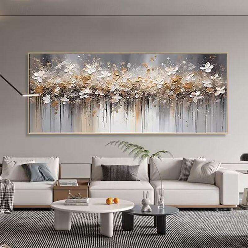 Handmade Oil Painting Canvas Wall Art Decoration Abstract F lowers Horizontal Bed Decoration Painting for Bedroom for Home Decor Rolled Frameless Unstretched Painting 1