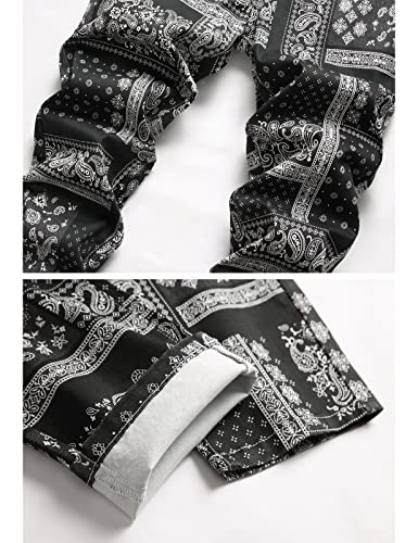 HOT ! Men Paisley Bandanna Digital Printed Stretch Jeans