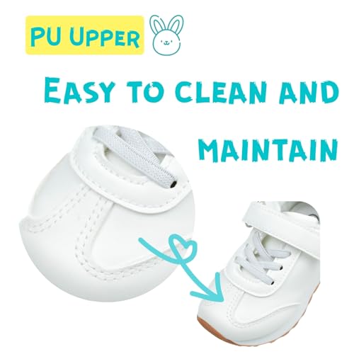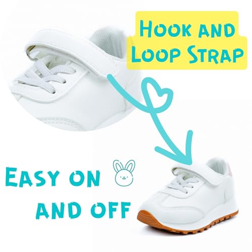 waddle wonder Cheer Shoes for Girls Toddler Tennis School Running Sneaker Non-Slip Hook&Loop Casual Kids Footwear White 4