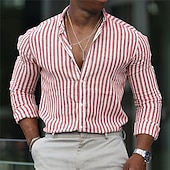 More information about Men's Shirt Striped Outdoor Casual Yellow Light Green Red Blue Long Sleeve Turndown Fall & Winter Clothing Apparel Print
