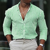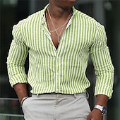 Men's Shirt Striped Outdoor Casual Yellow Light Green Red Blue Long Sleeve Turndown Fall & Winter Clothing Apparel Print 11