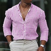 Men's Shirt Striped Outdoor Casual Yellow Light Green Red Blue Long Sleeve Turndown Fall & Winter Clothing Apparel Print 12