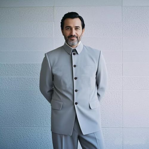 Men's Chinese Tunic Suit Set Formal 2 Pieces Blazer Pants Set Stand Collar Chinese Suit for Men Wedding Prom