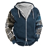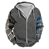 More information about Men's Zip Up Hoodie Full Zip Sweatshirt Army Green Navy Blue Khaki Dark Gray Hooded Plaid Zip Up Patchwork Sports & Outdoor Daily Holiday Polyester Streetwear Cool Casual Spring & Fall Clothing