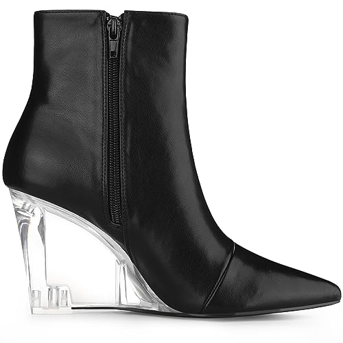 Allegra K Women's Clear Heel Pointed Toe Wedge Heels Ankle Boots 6