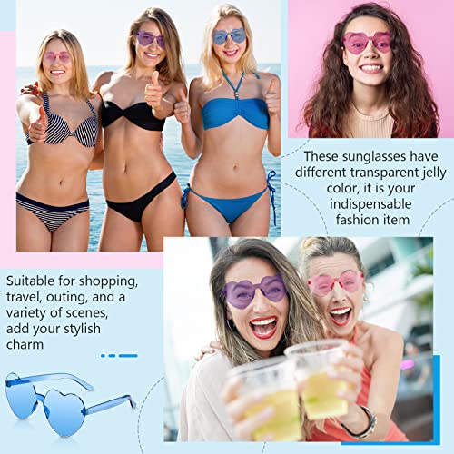 • Cute Heart Shape: our colorful sunglasses for party feature lovely heart shaped lenses and frameless design, sleek and charming, you can wear them when shopping and traveling, also suitable for daily decoration, straightforward for you to stand out in the crowd