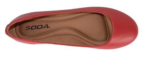 • Soda Kreme Comfortable Basic Shoes Women Ballet Flat Round Toe Gel Insole Red PU 6.5