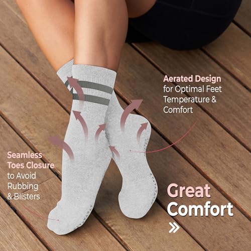 TAVI Kai Fashion Crew Grip Socks - For Slipper Barre, Pilates, and Yoga - with Grips for Women and Men 3
