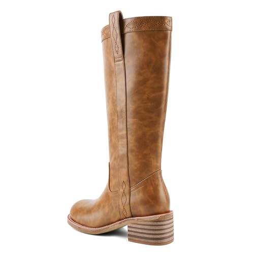 UBWDU Womens Knee High Boots Square Toe Platform Chunky Block Heel Banana Campus Boots 4