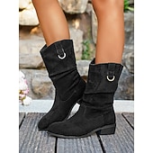 More information about Women's Tiger Print Faux Suede Mid-Calf Boots – Slouchy Western Style Boots with Buckle Detail, Stylish Casual Fall Footwear