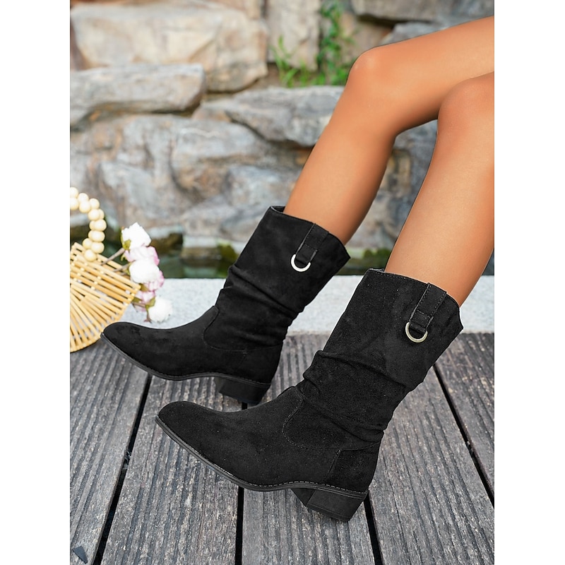 Highlights - Luxurious suede upper materials - Stylish chunky heel for added comfort and stability - Sleek pointed toe design - Durable rubber outsole for long-lasting wear