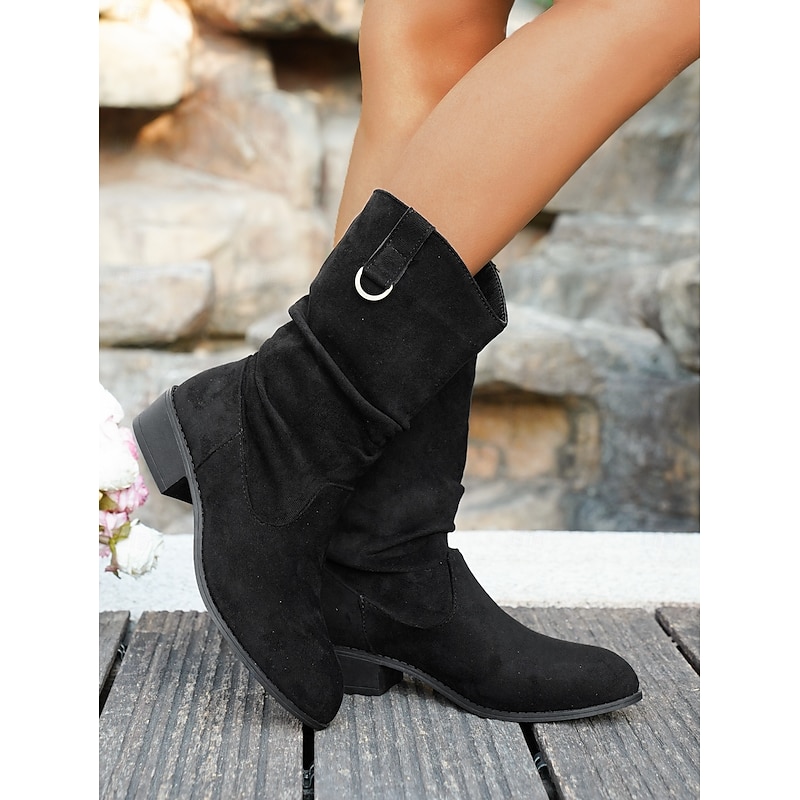 HOT ! Women's Tiger Print Faux Suede Mid-Calf Boots – Slouchy Western Style Boots with Buckle Detail, Stylish Casual Fall Footwear