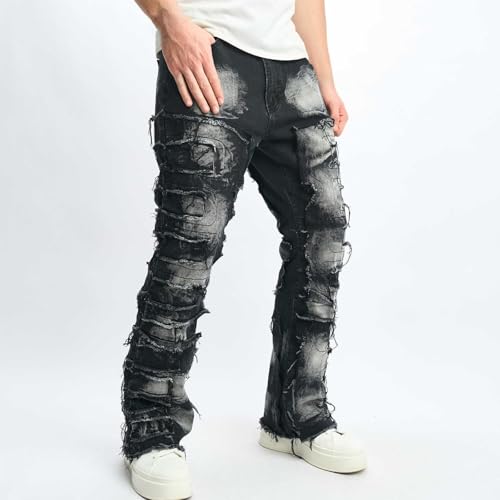 More information about Men's Ripped Jeans Vintage Washed Frayed Fashion Denim Pants Teen Boys Distressed Hip Hop Rap Streetwear Straight Fit