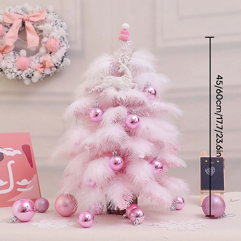 Pink Christmas Tree Feather Package Christmas Decor Blue Table Top Small Christmas Tree 7