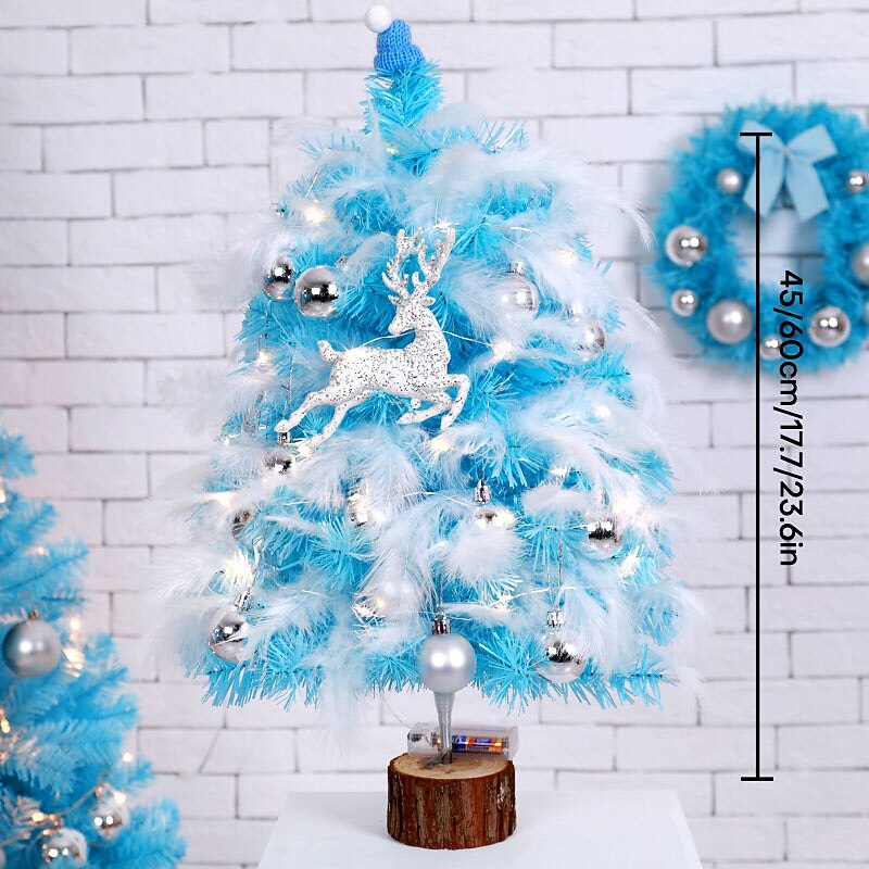 Pink Christmas Tree Feather Package Christmas Decor Blue Table Top Small Christmas Tree 8