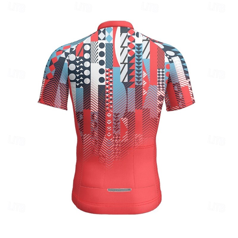 Men's Cycling Jersey Geometric Gradient Short Sleeve Bike Tee Tshirt Jersey with 3 Rear Pockets Mountain Bike MTB Quick Dry Anatomic Design Wicking Breathable Sports Dark Pink Dark Purple Red 20