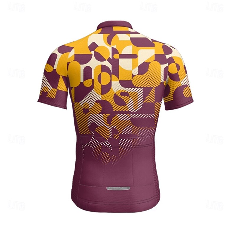 More information about Men's Cycling Jersey Geometric Gradient Short Sleeve Bike Tee Tshirt Jersey with 3 Rear Pockets Mountain Bike MTB Quick Dry Anatomic Design Wicking Breathable Sports Dark Pink Dark Purple Red