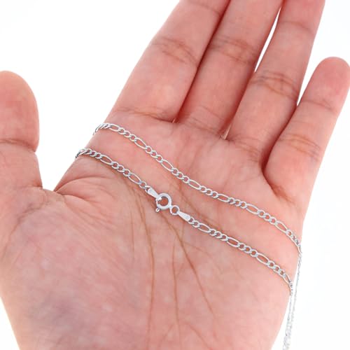 More information about Nuragold 14K Real White Gold Solid Figaro Link Chain Necklace 16"-30" (2.25mm-6.5mm) Italian Jewelry for Men & Women