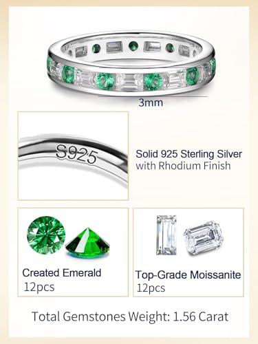 HOT ! CYW Moissanite Sapphire Ruby Emerald Hand Setting Full Eternity Rings for Men Women, Solid 925 Sterling Silver, Stackable Ring, Wedding Birthday Valentines Anniversary Ideal Gift