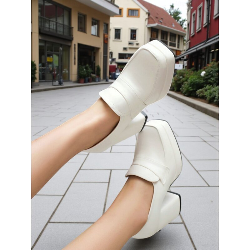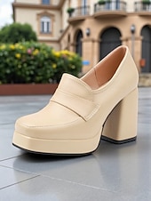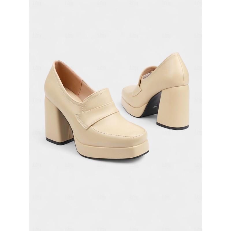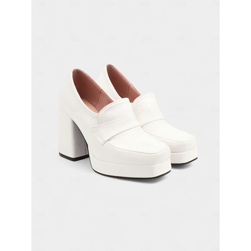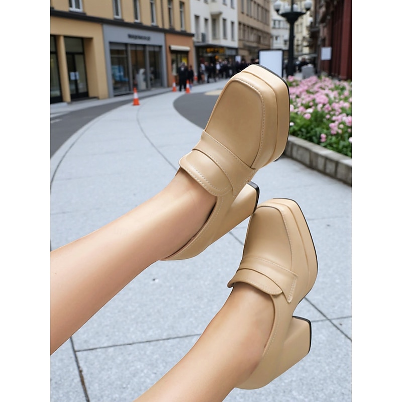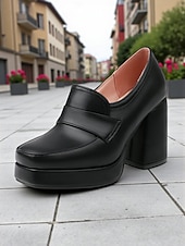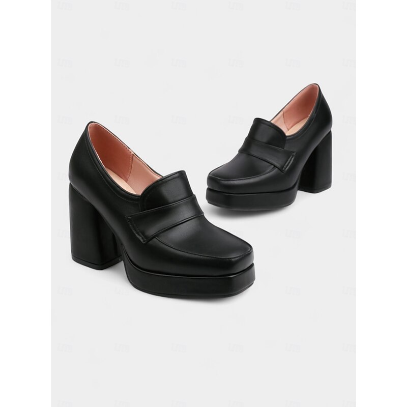 HOT ! Women's Black Platform Loafer Heels - Retro Chunky Block Heel Slip-On Shoes for Office Wear,Street Style and Vintage-Inspired Outfits
