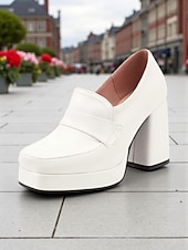 More information about Women's Black Platform Loafer Heels - Retro Chunky Block Heel Slip-On Shoes for Office Wear,Street Style and Vintage-Inspired Outfits