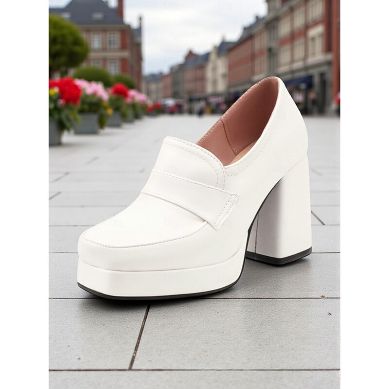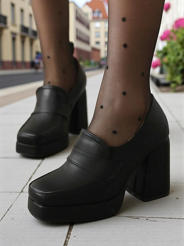 Women's Black Platform Loafer Heels - Retro Chunky Block Heel Slip-On Shoes for Office Wear,Street Style and Vintage-Inspired Outfits 14