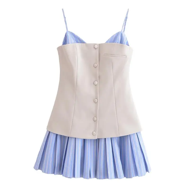 SPECIFICATIONSAge: Middle AgeBrand Name: HBHSFCN: ZhejiangChoice: yesClosure Type: PulloverCraft of Weaving: TatDecoration: PATCHWORKDresses Length: Above Knee , MiniElasticity: Non StrechFabric Type: JERSEYFit Type: SlimGender: WomenHign-concerned Chemical: NoneMaterial: POLYESTERMaterial Composition: synthetic fiberNeckline: StraplessOrigin: Mainland ChinaPattern Type: PatchworkPlace Of Origin: China (mainland)Season: SummerSilhouette: A-LINESleeve Length(cm): SleevelessSleeve Style: Spaghetti StrapStyle: CasualType: CamisoleWaistline: Naturalsize_info: {sizeInfoList:[{length:{cm:80,inch:31.50},size:XS,vid:872},{length:{cm:84,inch:33.07},size:S,vid:100014064},{length:{cm:88,inch:34.65},size:M,vid:361386},{length:{cm:92,inch:36.22},size:L,vid:361385}]}