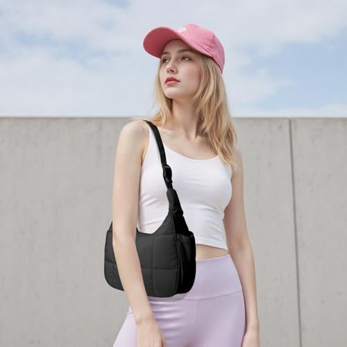 HOT ! Small Puffer Crescent Shoulder Bag for Women Lightweight Water-Resistant Nylon Purse with Adjustable Strap & Multiple Pockets