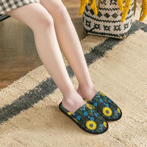Sunflowers And Blue Flower Print House Slippers For Women And Men,Soft Slippers With Memory Foam,Non-Slip Indoor Home Shoes 6