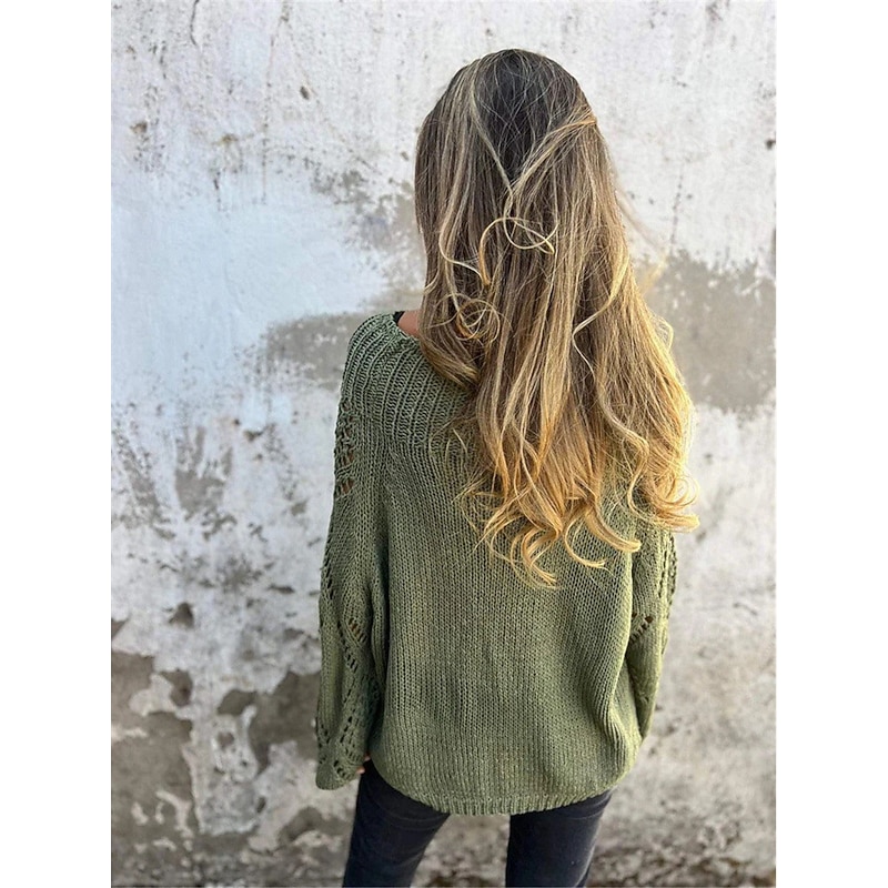 More information about Women's Sweater Pullover Sweater Jumper Casual Soft Pure Color Crochet Crew Neck Knitted Long Sleeve Regular Tops Knit Outdoor Daily Weekend White Green Fall