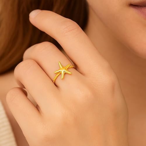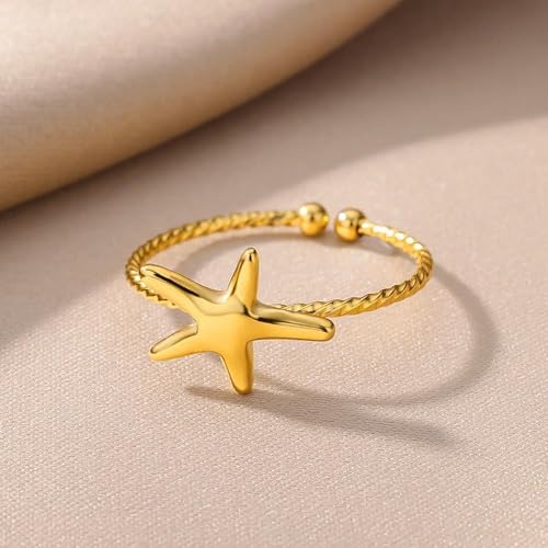 1PCS Starfish Ring, Gold Tone, Fashion Jewelry for Women, Trendy Accessories for Casual Wear, Stylish Adjustable Ring for Everyday Use (Golden) 7